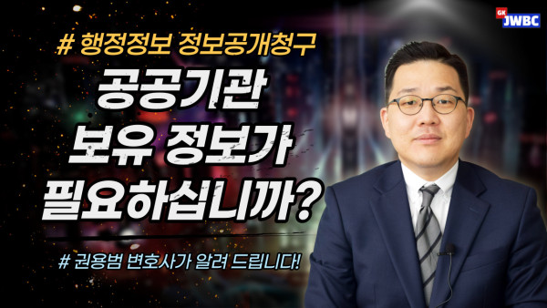 [법무법인 주원 법률방송] 공공기관 보유 정보가 필요하십니까? (정보공개청구) (권용범 변호사, 법무법인 주원) 2023-04-17 관련링크 https://youtu.be/F_fE262XbFc 안녕하세요.법무법인 주원 법률방송 입니다.법무법인 주원 권용범 변호사가 공공기관이 보유한 정보가 필요할 경우 어떤 방법으로 자료 요청을 할 수 있는지 자세히 설명해 드립니다. 목록