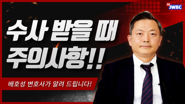 [법무법인 주원 법률방송] 수사 받을 때 주의사항!! (배호성 변호사, 법무법인 주원) 2023-04-25 관련링크 https://www.youtube.com/watch?v=OXRuEW3FyL4 안녕하세요.법무법인 주원 법률방송 입니다.법무법인 주원 배호성 변호사가 고소, 고발로 조사를 받을 시 주의사항에 대해 자세히 설명해 드립니다!! 목록