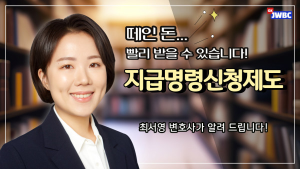 법무법인 주원 최서영 변호사가 떼인 돈 빨리 받을 수 있는 방법, 지급명령신청제도에 대해 쉽게 설명해 드립니다.