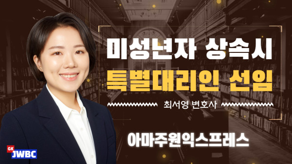[법무법인 주원 법률방송] 미성년자 상속 시 특별대리인 선임 (최서영 변호사) 2022-08-22 관련링크 https://youtu.be/0FqZGdo6xmw 안녕하세요.법무법인 주원 법률방송 입니다.법무법인 주원 최서영 변호사가 미성년자 상속 시 특별대리인 선임에 대해 쉽게 설명해 드립니다. 목록