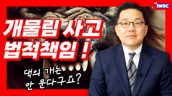[법무법인 주원 법률방송] 개물림사고 법적 책임! (권용범 변호사, 법무법인 주원) 2023-11-20 관련링크 https://www.youtube.com/watch?v=XReRvJNpLM4 안녕하세요.법무법인 주원 법률방송 입니다.법무법인 주원 권용범 변호사가 증가 추세인 개물림 사고에 대하여 견주는 어떠한 법적 책임을 지게 되는지 알려드립니다. 목록