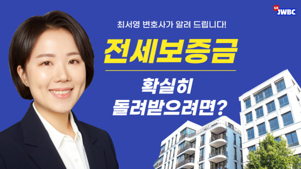 [법무법인 주원 법률방송] 전세보증금 확실히 돌려 받으려면? (최서영 변호사) 2022-12-12 관련링크 https://www.youtube.com/watch?v=cQLn-NYXOEo 안녕하세요.법무법인 주원 법률방송 입니다.법무법인 주원 최서영 변호사가 전세보증금 확실히 돌려 받는 법에 대해 설명해 드립니다 !! 목록