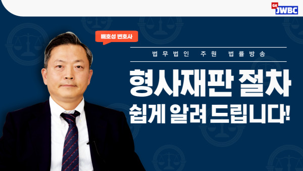 [법무법인 주원 법률방송] 형사재판 절차 쉽게 알려 드립니다. (배호성 변호사) 2022-12-26 관련링크 https://youtu.be/fCOjrRl5euA 안녕하세요.법무법인 주원 법률방송 입니다.법무법인 주원 배호성 변호사가 형사재판의 절차와 항소 시 유의해야 할 법정기한 등에 대해 쉽게 설명해 드립니다. 목록