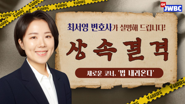 [법무법인 주원 법률방송] 상속결격 (최서영변호사) 2022-09-14 관련링크 https://youtu.be/n9iMLUDH1to 안녕하세요.법무법인 주원 법률방송 입니다.법무법인 주원 최서영 변호사가 새로운 코너 속의 코너 '법 내려온다'로 새롭게 준비했습니다. 민법 제1004조 상속결격 사유에 대해 자세히 설명해 드리겠습니다! 목록