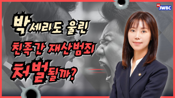 [법무법인 주원]박세리도 울린 친족간 재산범죄 처벌될까? (이지원 변호사, 법무법인 주원) 2024-07-22 관련링크 https://www.youtube.com/watch?v=MLKYx1qTqys 안녕하세요.법무법인 주원 법률방송 입니다.로펌맛집, 법무법인 주원 이지원 변호사가 친족간 재산범죄 관련 헌법재판소 결정에 대해 설명해 드립니다. 목록